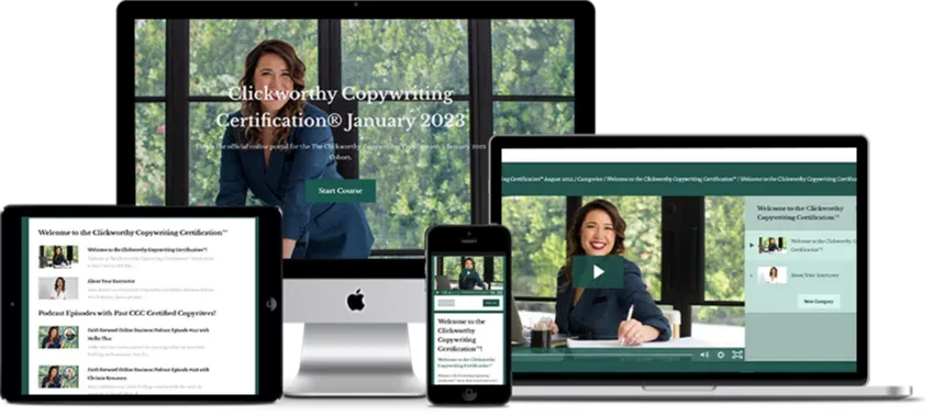 The Clickworthy Copywriting Certification® was created by Anna Powers–a Conversion Copywriter and Online Business Mentor for motivated entrepreneurs. Anna replaced her annual salary as a full-time attorney in one year simply by attracting high-quality clients as a freelance copywriter and quickly noticed how under-serviced the copywriting industry is. To satisfy the demand of her students and clients, she created the Clickworthy Copywriting Certification® in the spring of 2021, and has taken nearly 200 incredible business owners through the program to date.